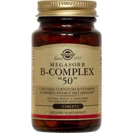 Produkt Solgar Megasorb B-Complex “50” - 100 tabl. Solgar to suplement diety. Nie może być stosowany jako substytut zróżnicowanej diety. Pamiętaj o zrównoważonym sposobie żywienia i zdrowym trybie życia.