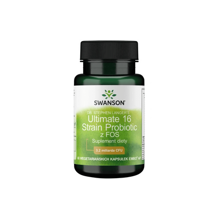 Produkt Swanson Ultimate 16 Strain Formula 60 K Swanson to suplement diety. Nie może być stosowany jako substytut zróżnicowanej diety. Pamiętaj o zrównoważonym sposobie żywienia i zdrowym trybie życia.