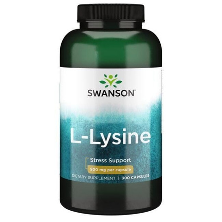 - Swanson L-Lysine 500 mg to suplement diety w formie kapsułek, zawierający wolną formę aminokwasu L-lizyny – niezbędnego składnika budulcowego białek, wspierającego regenerację tkanek, odporność i zdrowie skóry.
