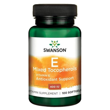 Produkt Vitamine E Mixed Tocopherolos 400 IU (100 kaps.) Swanson to suplement diety. Nie może być stosowany jako substytut zróżnicowanej diety. Pamiętaj o zrównoważonym sposobie żywienia i zdrowym trybie życia.