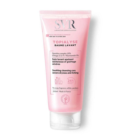 - TOPIALYSE BAUME LAVANT to balsam do mycia skóry bardzo suchej, podrażnionej ze skłonnością do alergii. Nie zawiera siarczanów ani substancji zapachowych.