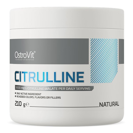 - Suplement diety OstroVit Cytrulina to wysokiej jakości produkt, który zawiera jabłczan cytruliny, witaminę B6 i taurynę. Jabłczan wykazuje dużą wchłanialność i przyswajalność przez organizm. Preparat marki OstroVit ma prosty skład.