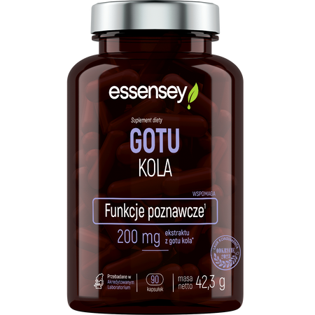 - Essensey Gotu Kola to suplement diety, który świetnie sprawdzi się dla osób aktywnych. Oparty na ekstrakcie z Centella asiatica, znanej jako Gotu Kola, produkt tez zyskał na popularności wśród zwolenników holistycznego dbania o zdrowie.