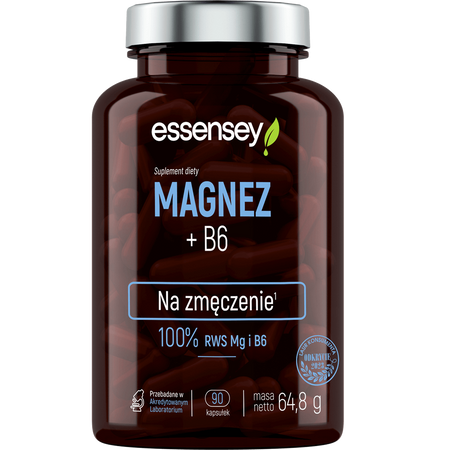 Produkt ESSENSEY MAGNEZ + B6 90 kaps. ESSENSEY to suplement diety. Nie może być stosowany jako substytut zróżnicowanej diety. Pamiętaj o zrównoważonym sposobie żywienia i zdrowym trybie życia.