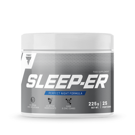 - Trec Nutrition Sleeper to zaawansowany suplement diety, który wspiera zdrowy i regenerujący sen. Dzięki bogatej formule z naturalnymi składnikami pomaga w szybszym zasypianiu, redukuje stres i poprawia ogólną jakość snu.
