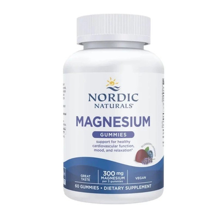 - Nordic Naturals Magnesium Gummies Blueberry Lavender 60 żelek to suplement diety w formie smakowitych żelek, zawierający magnez w połączeniu z unikalnym aromatem borówki i lawendy.